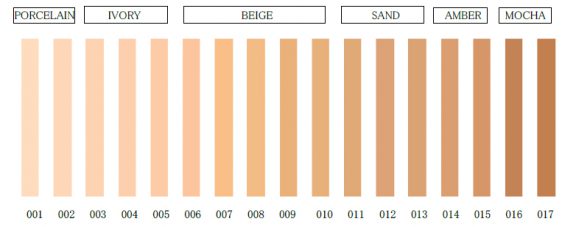 乳液のように心地よくのび、最も素肌に近い仕上がりだという。グローバル視点で設計された17色のカラーグラデーションは6つのカラーカテゴリー(PORCELAIN/IVORY/BEIGE/SAND/AMBER/MOCHA)で構成されている。