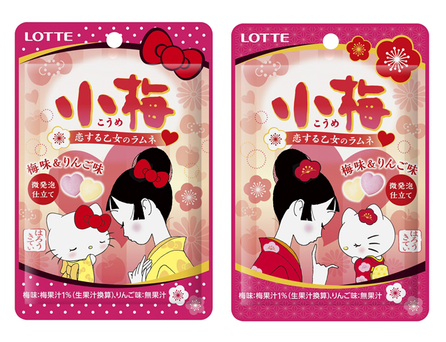 ロッテは7月11日、小梅ちゃんとハローキティのコラボレーション商品「小梅とハローキティ 恋する乙女のキャンディ(袋)」と「小梅とハローキティ 恋する乙女のラムネ」を発売する。