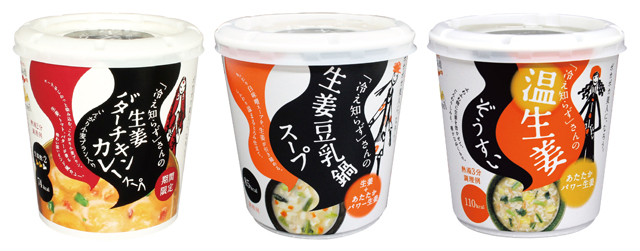 永谷園は9月4日、カップタイプの「冷え知らずさんの生姜バターチキンカレースープ・生豆乳鍋スープ・温生姜ぞうすい」を秋冬限定発売する。