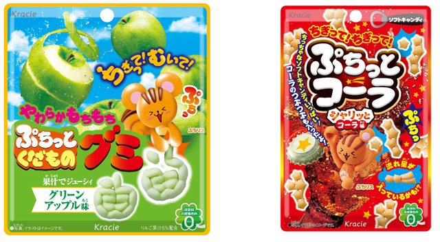 クラシエフーズは9月4日、ちぎって食べる「ぷちっと」シリーズから 「ぷちっとくだものグミ グリーンアップル味」と「ぷちっとコーラ シャリッとコーラ味」を発売した。