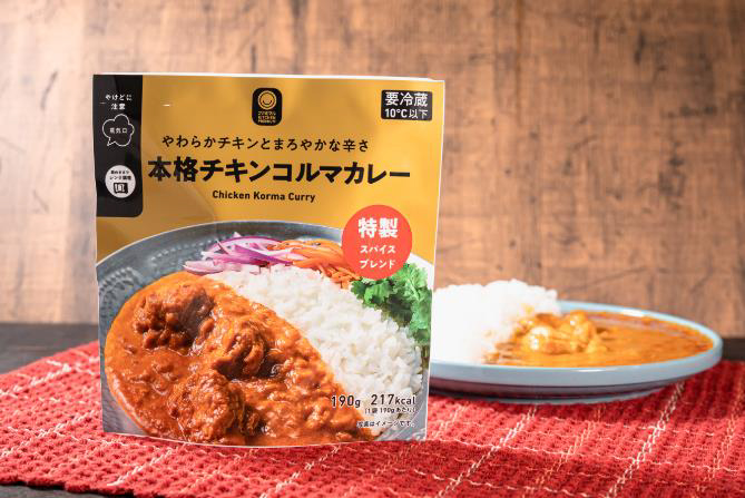 やわらかチキンと玉ねぎのコク・甘みが効いた、まろやかな辛さを楽しめる「本格チキンコルマカレー」は、約90gの玉ねぎを使用したソテーオニオン、ヨーグルト、カシューナッツなどを使用した、まろやかな辛さが特徴のスパイスカレー。カレールウやカレーフレークを使わず、オリジナルブレンドのスパイスで仕上げた。