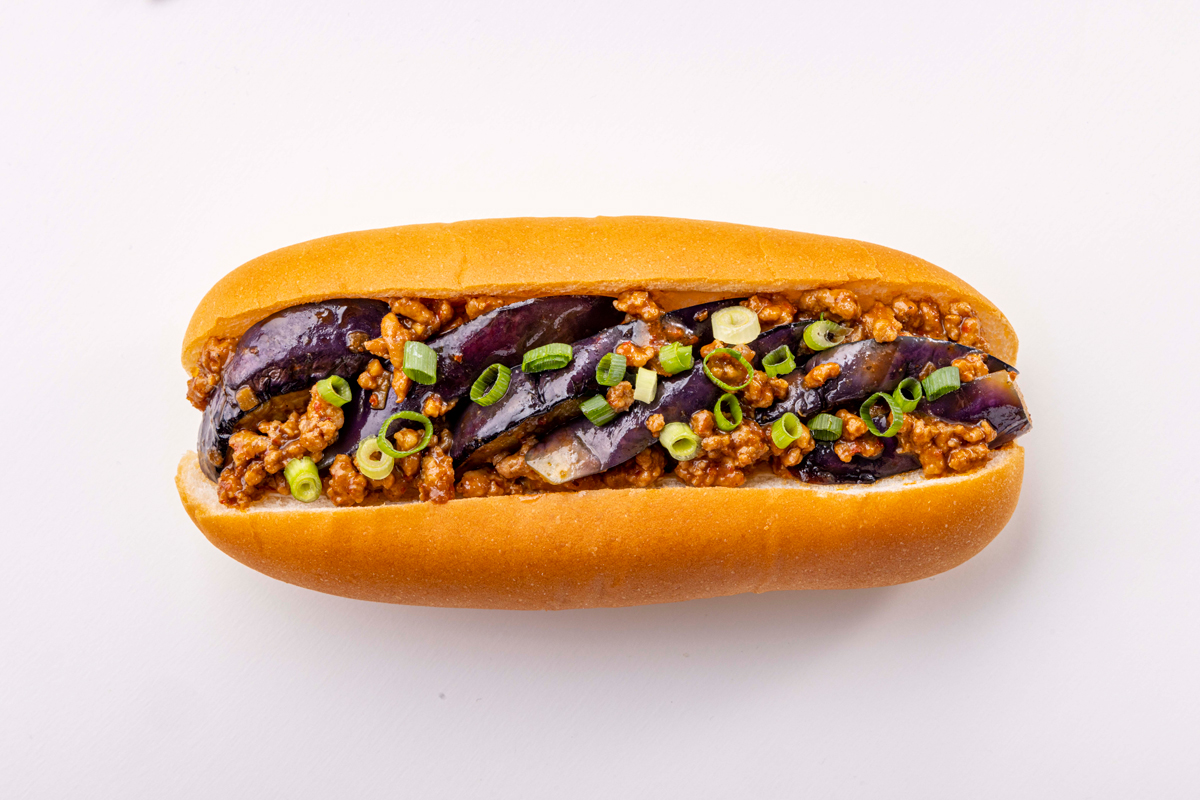 「麻婆茄子コッペ」は、国産の茄子を特製麻婆ソースに絡めた麻婆茄子をはさんだ。万能ねぎとファージャオオイルがアクセントだとしている。