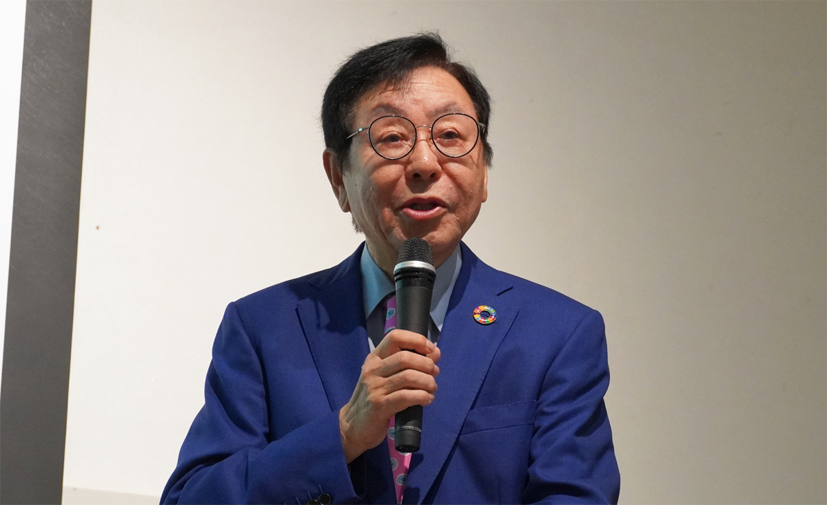 10月14日に開かれた秋冬新商品展示会で、ニトリの似鳥昭雄会長兼社長は「他社は30万円前後のところを、その半額の15万円で発売する」と強調する。