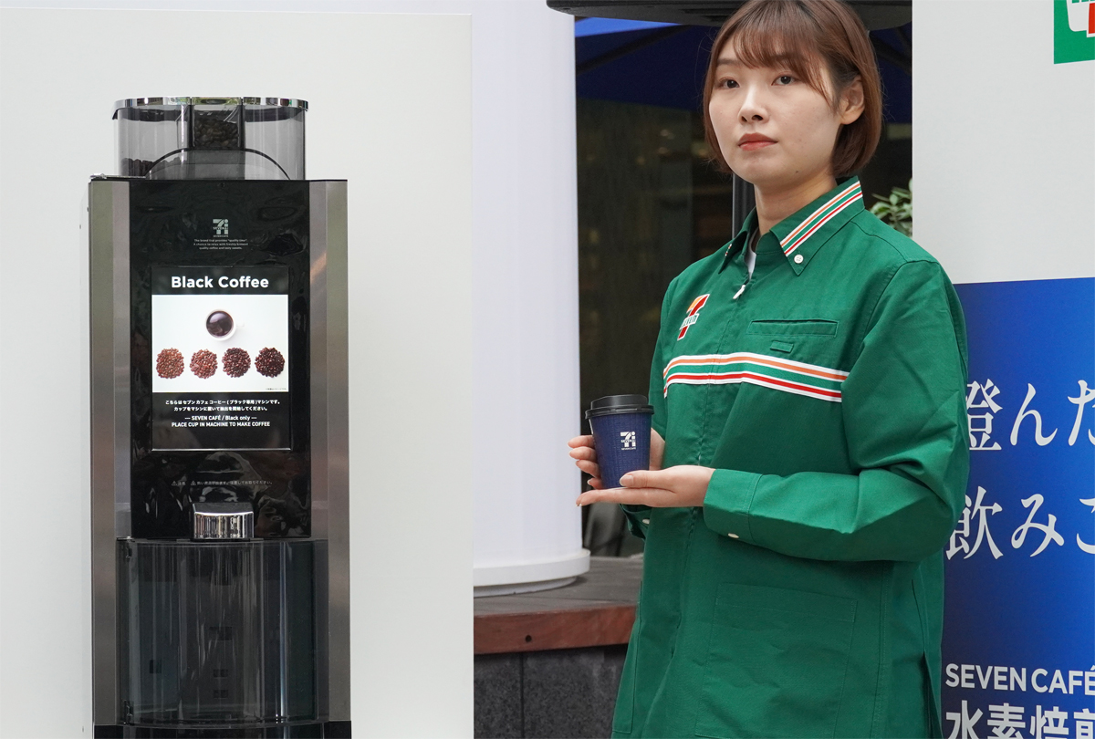 セブンーイレブンは既存店の客数が直近は3カ月連続で前年比マイナスと苦戦。そうした中で「水素焙煎コーヒー」による客数増への期待感は「当然ある」(石橋氏)。