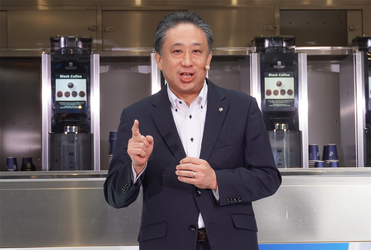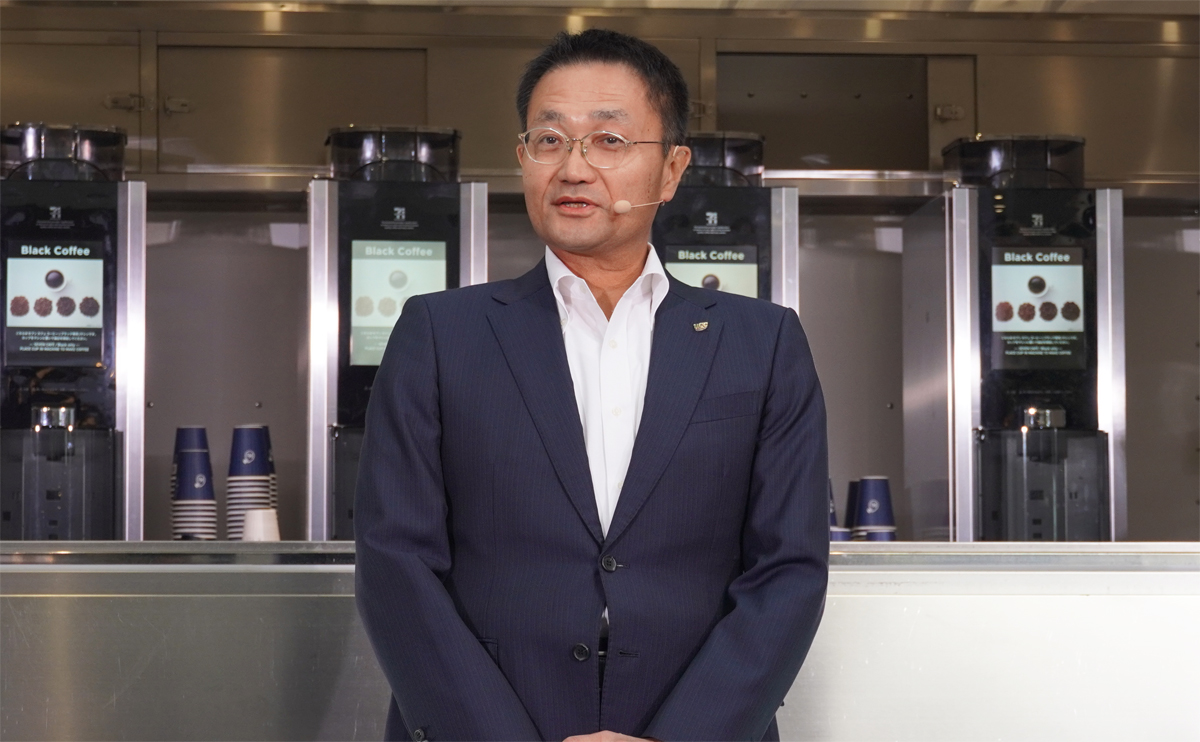 10月24日に都内で開かれた新商品発表会で、SEJの阿久津知洋社長は「働く女性の増加、食の外部化、物価高など生活者を取り巻く環境が変化する中、カウンター商材にはまだまだ大きなニーズがある。『水素焙煎コーヒー』がカウンター商材の中核になると確信している」と自信を見せる。