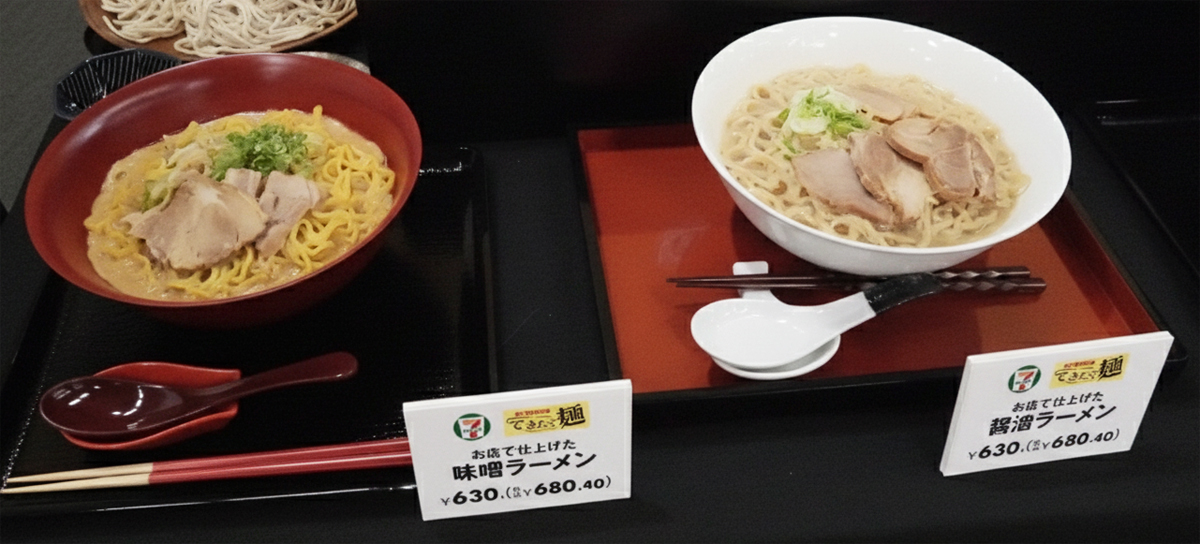 これにソフトバンクロボティクスが11月11日に発売した「中華蕎麦とみ田 濃厚豚骨魚介ラーメン」と「麺処 晴 煮干し醤油ラーメン」の2種類を含め、合計7商品をラインアップする。セブン-イレブンでは新たな商品も開発中だという。