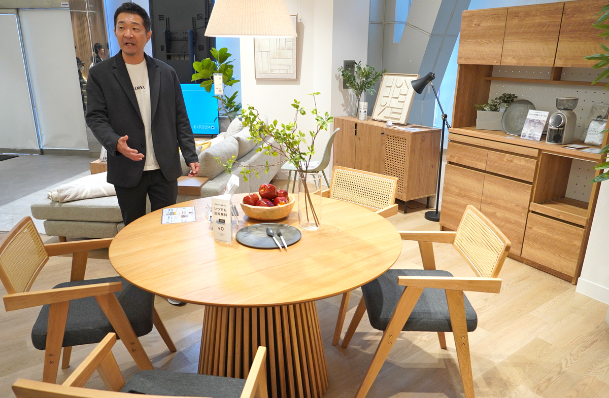 シンプルな見た目の家具が多い中、「トレンド感、デザイン性というものは非常に重要視している」とベガコーポレーションの浮城智和社長は話す。