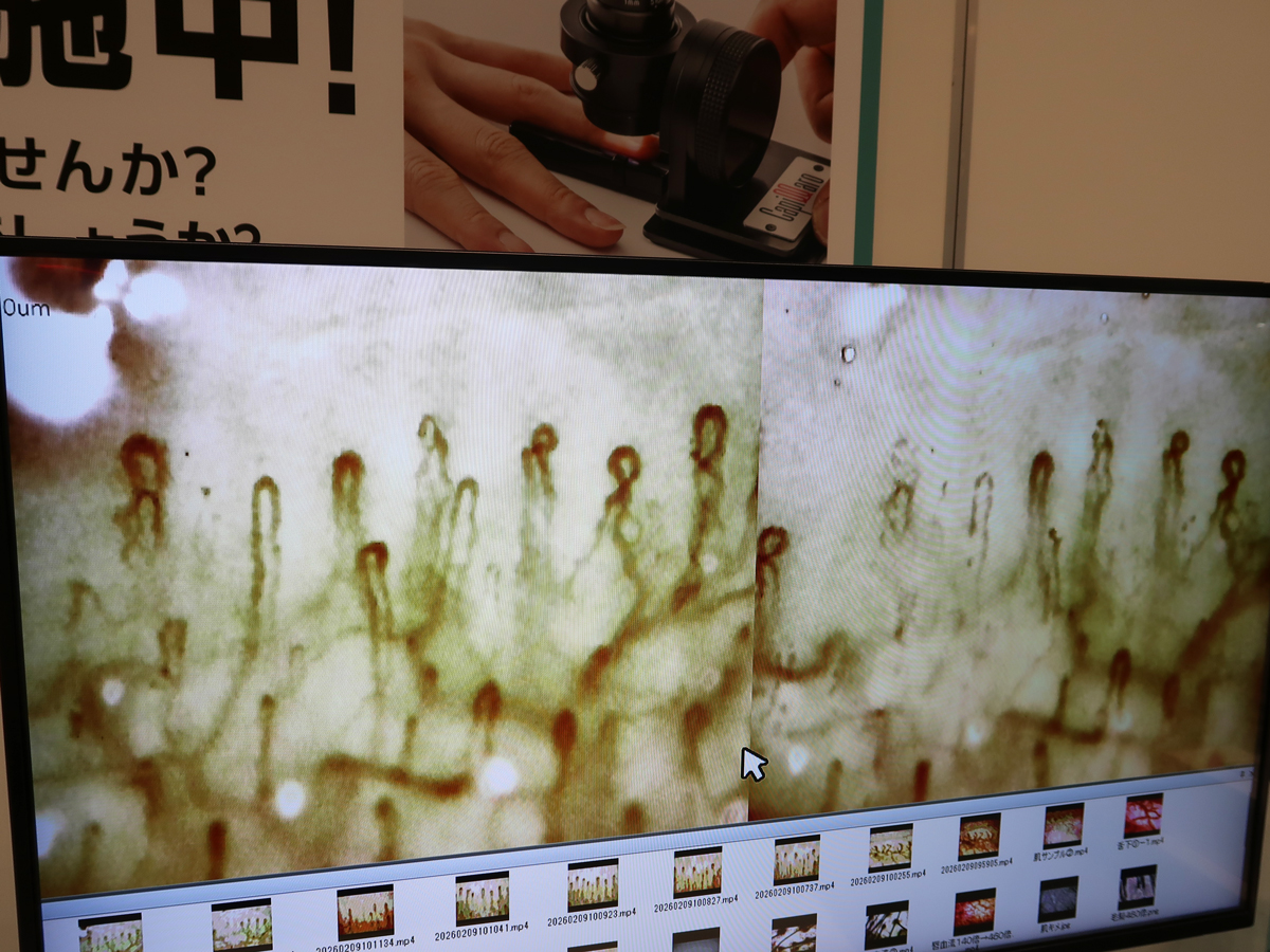 ※画面左がメディヒールを載せた手の甲、右が載せない手の甲の血流
