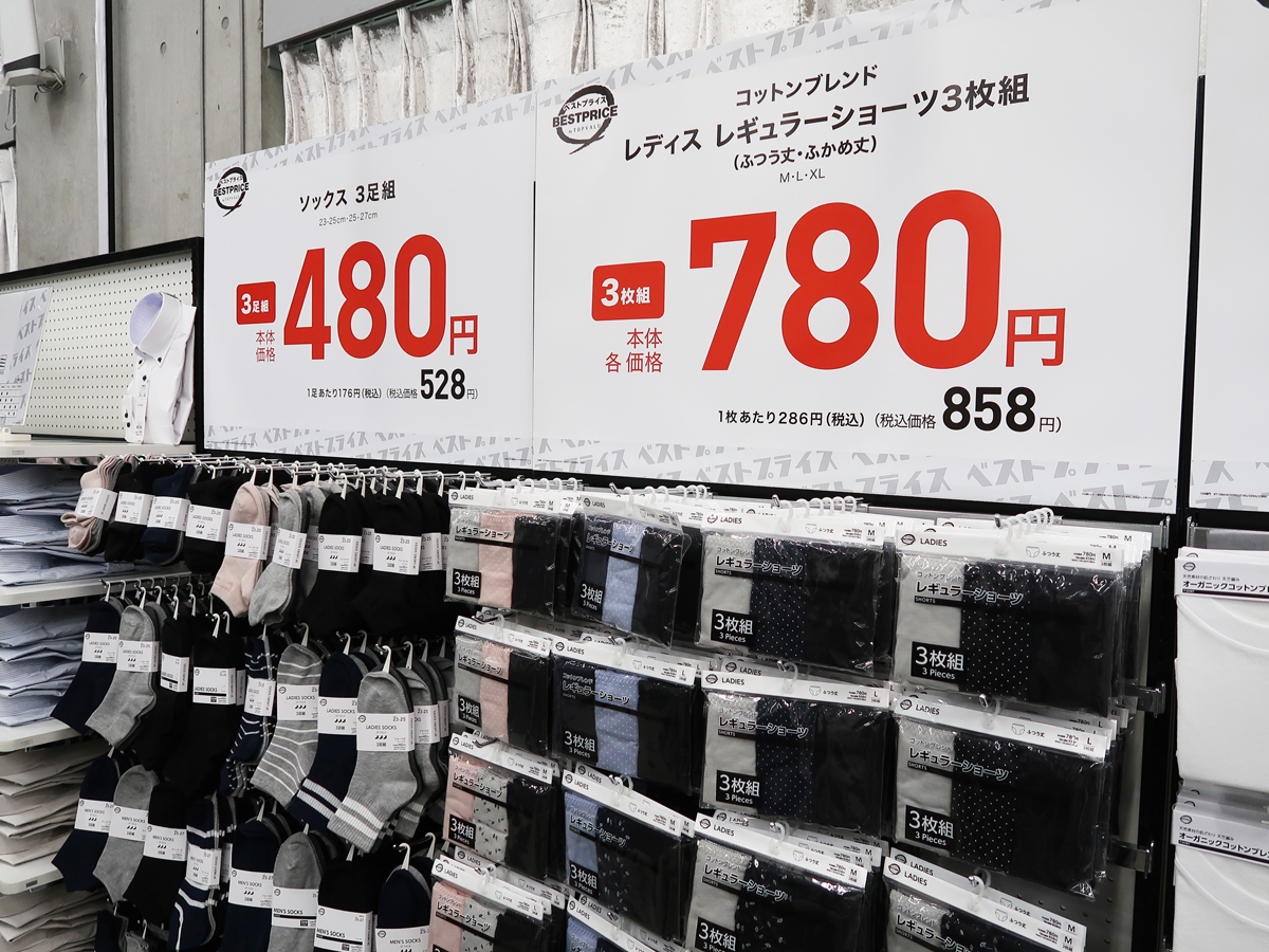 「生活者の節約志向が続く中、昨年の衣料品の売り上げは厳しかった。生活防衛ニーズに応える価格政策の必要性を感じ、一部商品をのぞき2022年で休止していたベストプライス商品を2026年から拡充する。肌着、靴下、キッズ・ベビーの日用品などデイリーコンビニエンスな商品をそろえた。キッズは成長によるサイズアウトや汚れやすいことを想定し、3足組靴下税別380円、バレーシューズ(上履き)460円で販売する」。