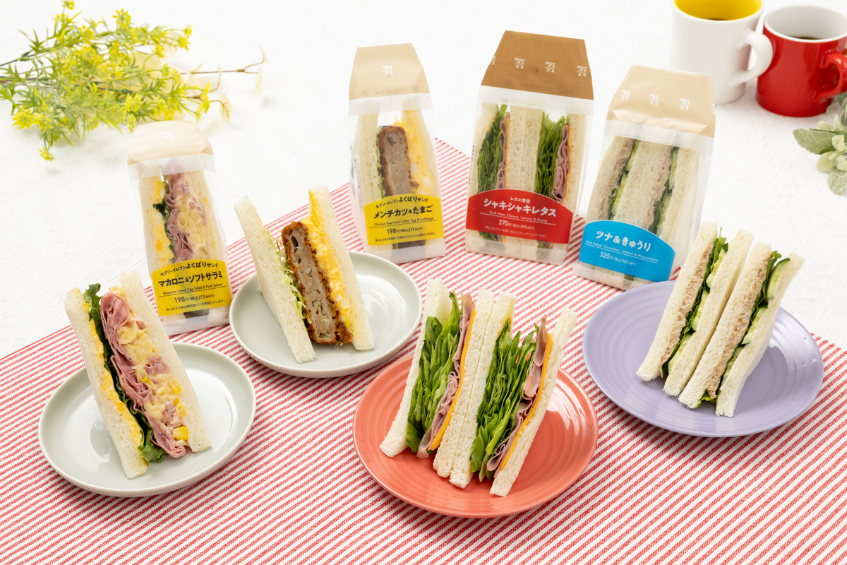 ワンハンド商品として、ボリューム感と値ごろな価格(税別198円)を両立させた新シリーズ「セブン‐イレブンよくばりサンド」が、登場。具材比率を高め、パン2枚であふれんばかりの具材をダイレクトに味わえる新構造を採用した。