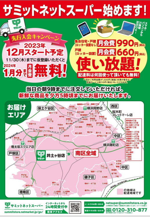 サミットは9月4日、サミットストア井土ヶ谷店(横浜市南区)にて12月から「サミットネットスーパー」を開始すると発表した。