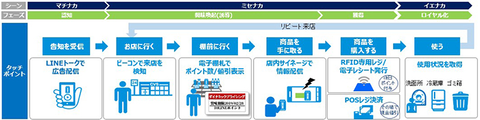 RFIDにより生活者の利便性を向上させる“ミセナカ(店内)・イエナカ(自宅内)”での新サービスの可能性についても言及した。