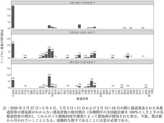 以上の状況から、「日本国内の感染の状況については、3月9日付の専門家会議の見解でも示したように、引き続き、持ちこたえていますが、一部の地域で感染拡大がみられます。諸外国の例をみていても、今後、地域において、感染源(リンク)が分からない患者数が継続的に増加し、こうした地域が全国に拡大すれば、どこかの地域を発端として、爆発的な感染拡大を伴う大規模流行につながりかねないと考えています」との懸念を示した。