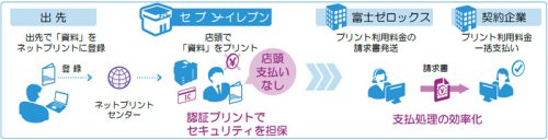 富士ゼロックスとセブン-イレブン・ジャパンは9月3日、全国のセブン‐イレブン店舗のマルチコピー機で展開する、インターネット経由でプリントができるクラウド型の「ネットプリントサービス」を追加し、法人向けに機能強化した「ネットプリントサービス for business afterpay」を開始する。