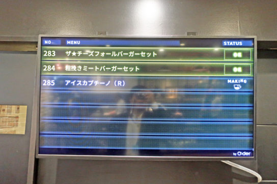 注文商品は、店内のデジタルサイネージに表示され、調理中か受け取り可能か、注文の順番ごとに表示する。
