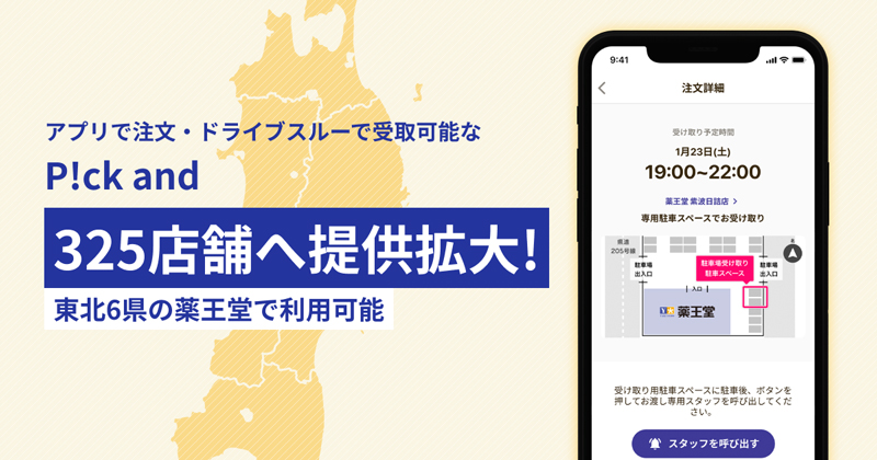 薬王堂/アプリで注文・ドライブスルー受取可能な「ピックアンド」325店導入