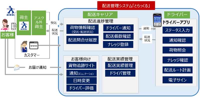 アスクルはこのほど、独自に開発した配送管理システム「とらっくる(仮称)」の提供を本格的に開始する。