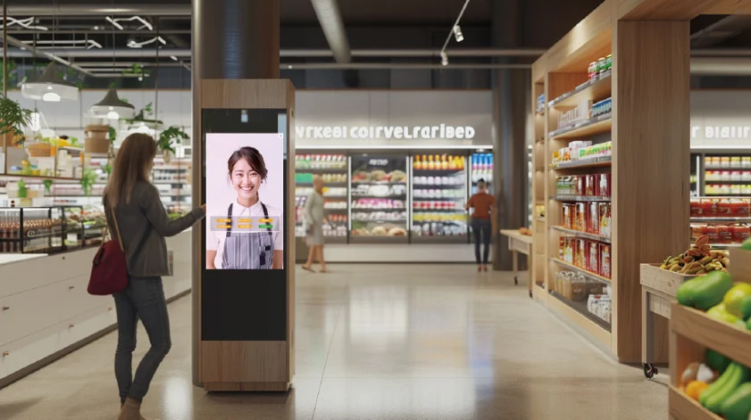 接客を主体としたコンシェルジュ機能に加え、デジタルサイネージ上の商品棚から商品の購入が可能な機能を組み合わせた店頭販促ツールも有する。顧客が選んだキーワードやイメージに応じて、オススメ商品の一覧や最新情報をサイネージ上に表示。顧客が求める商品・サービスとの出会いをサポートする。