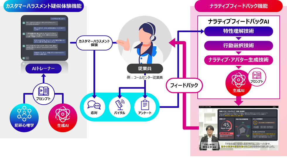 富士通は6月3日、東洋大学とカスタマーハラスメント疑似体験機能とナラティブフィードバック機能を備えたカスタマーハラスメント体験AIツールを開発したと発表した。