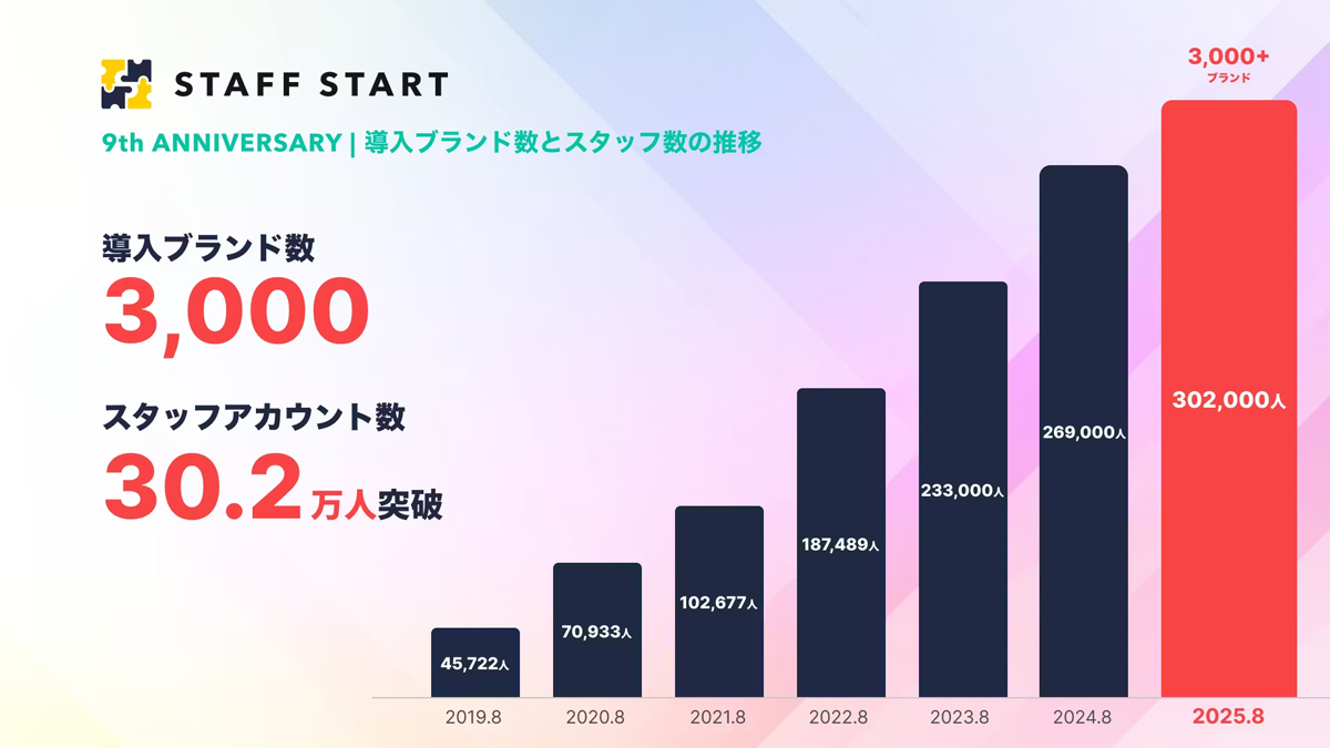 バニッシュ・スタンダードはこのほど、2024年9月~2025年8月「STAFF START」を経由した流通総額は2212億円となったと発表した。