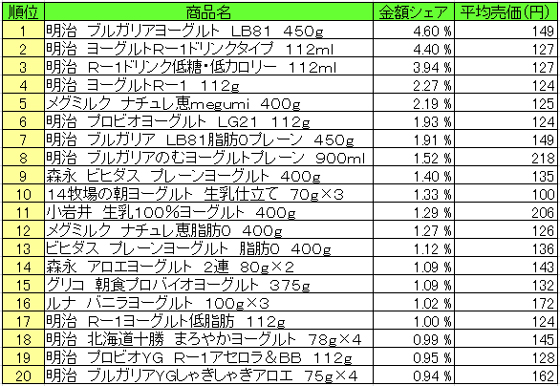 デザート・ヨーグルト 売上ランキング/12月14日~12月20日、「明治 ブルガリアヨーグルト LB81」が1位