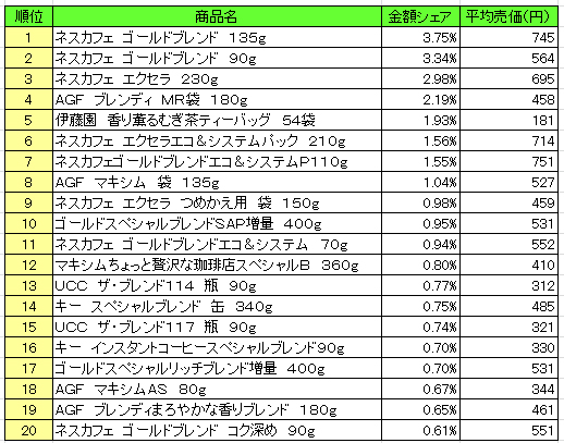 「ネスカフェ ゴールドブレンド 135g」が1位だった。