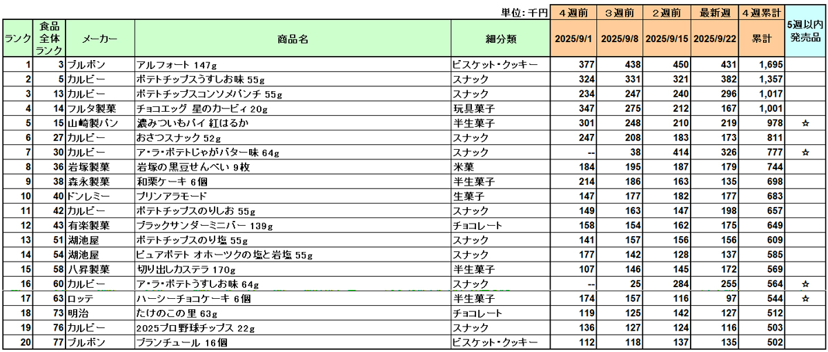 お菓子 売上ランキング/9月はブルボン「アルフォート」が3カ月連続1位