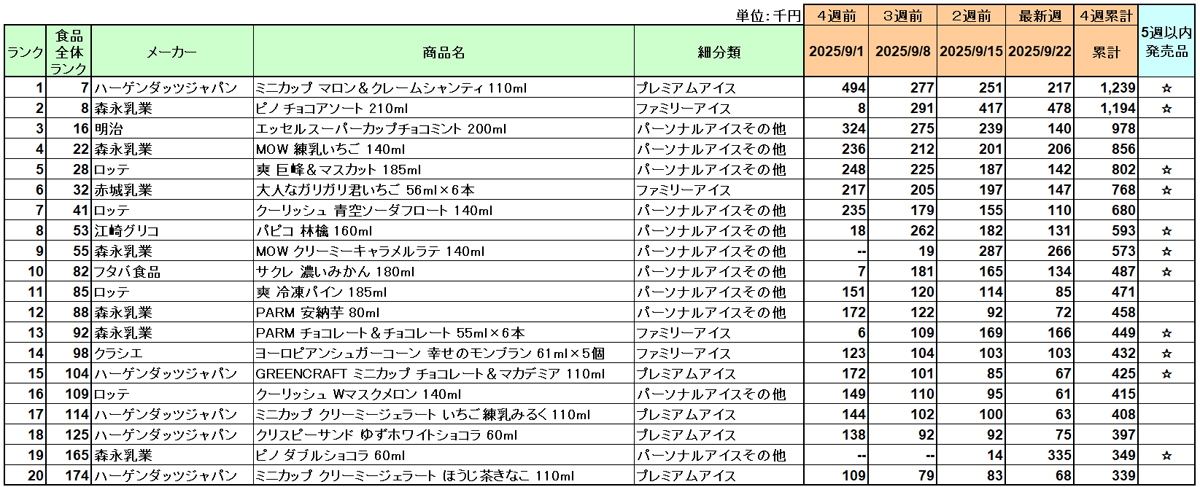 アイスクリーム 売上ランキング/9月は「マロン&クレームシャンティ」が1位