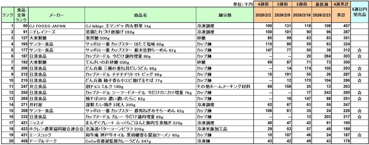 加工食品 売上ランキング/2月は「CJ bibigo 王マンドゥ 肉&野菜」が1位