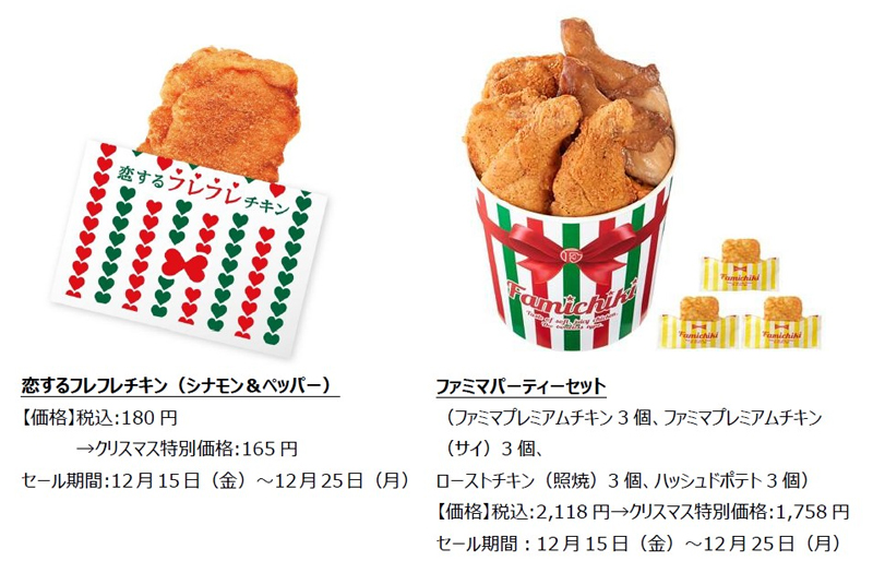 ファミリーマートは、クリスマスに向けて、新商品「恋するフレフレチキン(シナモン&ペッパー)」、リニューアルし生まれ変わった「ファミマプレミアムチキン」など発売した。
