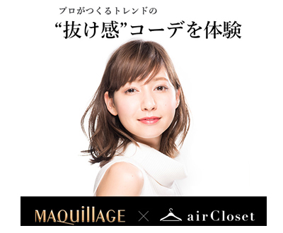 資生堂のメーキャップブランド「マキアージュ」とオンラインファッションレンタルサービス「airCloset」は、 トレンドである抜け感メークとファッションをコーディネートするパーソナルスタイリングサービス「抜け感コーデ体験」を限定で共同提供する。