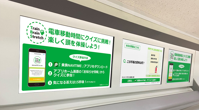 ジェイアール東日本企画(jeki)は3月21日~27日、電車での移動の時間を楽しんでもらうことを目的に、電車内の広告媒体において「ひらめき系クイズ」を日替わりで出題し、スマートフォンアプリで答え合わせをする、生活者体験型広告企画「Train Brain Stretch」を実施する。