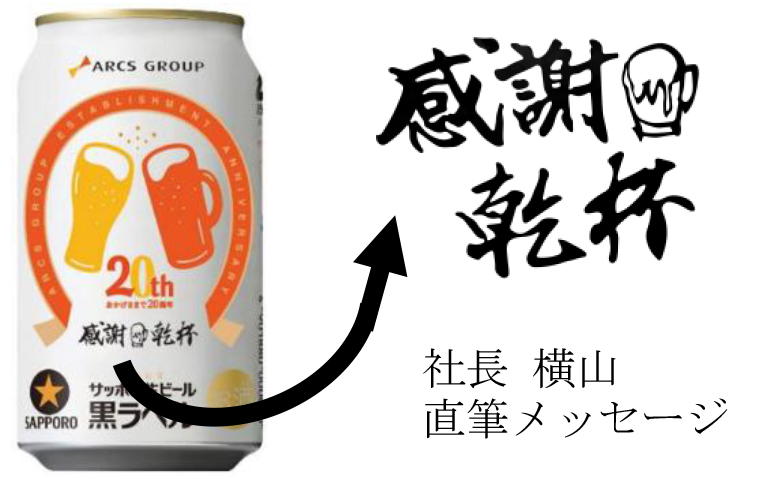 2つ目の記念事業として、メーカーとタイアップした20周年記念商品を発売。そのうちの一つ「サッポロ生ビール黒ラベル アークス20周年記念缶」には、アークスの横山清社長の直筆メッセージがデザインされている。このほか、事業会社ごとのオリジナル弁当も用意した。いずれも数量限定品となる。