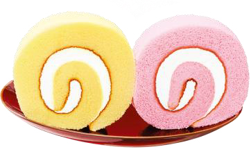「紅白ロールケーキ」(128円)は、赤と白のロールケーキ2個入り。赤い生地には、いちごの濃縮果汁を配合しており、卵白を配合した軽い食感のしっとり生地が特長。クリームをたくさん味わえる巻き方に工夫した。