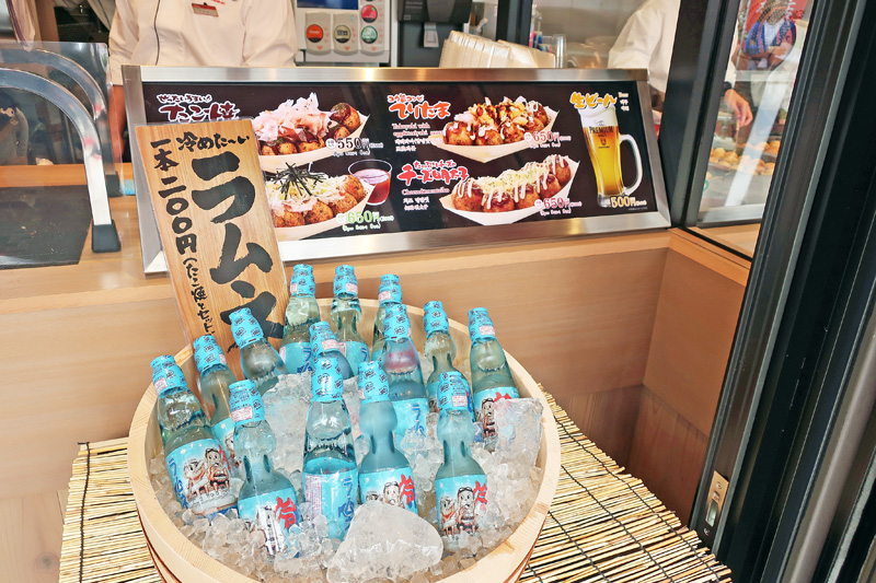 通常店舗と同様のメニューを提供するが、本店として、タコには国産タコを、かつお節は削りたてのかつお節を使用する。