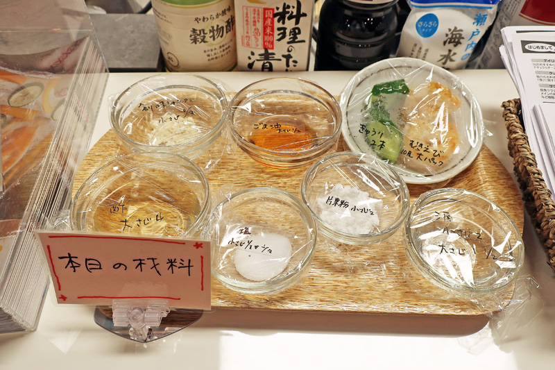 レシピでは、実際に使用する材料を並べることで、視覚的に訴え、分かりやすくメニューを紹介する。