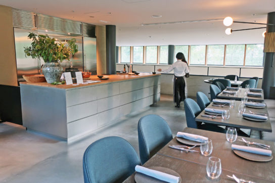2階は、ラボラトリスタイルコースメニューを提供。各店舗に所属するシェフが3か月に1回の頻度で交代制で参加、約2週間の期間限定のコースメニューを提供し、年間で4人のシェフが24通りのメニューを提供する予定だ。