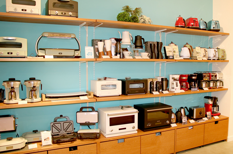 キッチン家電はToffyブランド商品のほか、バルミューダ、デロンギなど他社のキッチン家電も取り扱い、比較検討しながら購入できる。