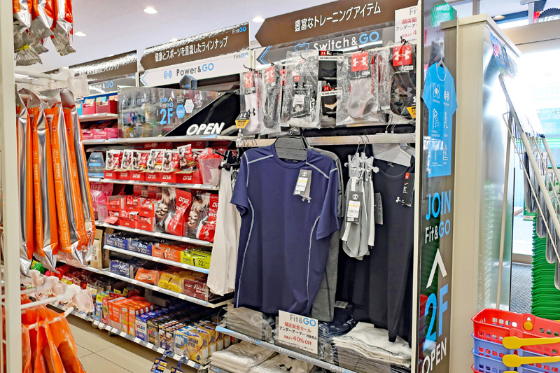 フィットネス利用者が購入する、プロテインは男性用25アイテム、女性用23アイテムを展開。アンダーアーマーのトレーニングウエアは40アイテムを販売する。
