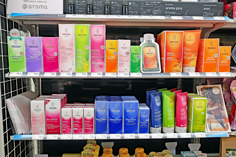 女性の利用者を意識して、気分をリフレッシュする幅広いラインナップでは、アロマも販売する。