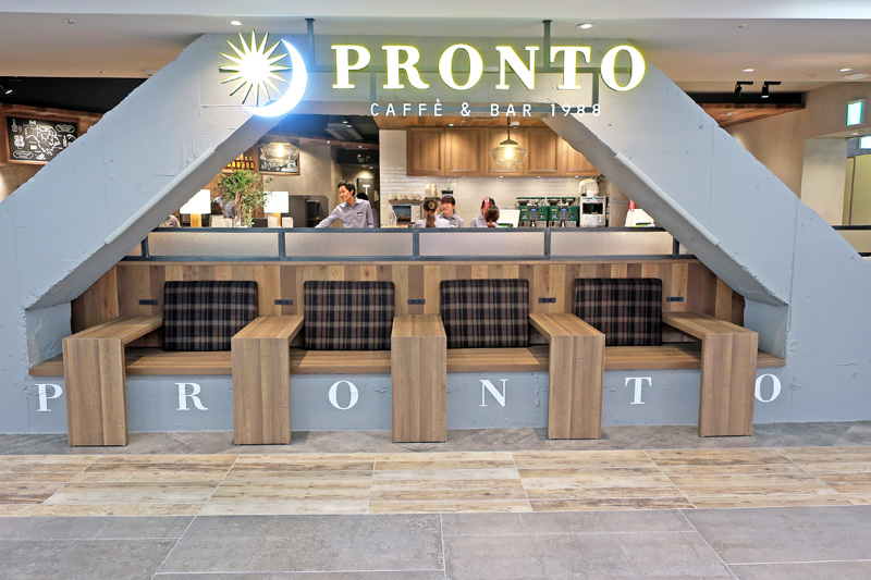 クイック&イートインゾーンの最後には、昼はカフェ、夜はバーの二毛作業態のカフェ&バー「プロント」を配置することで、早朝から深夜までのニーズに対応する。