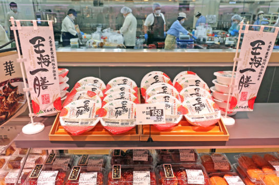 鮮魚部門の素材を使用したお弁当、おにぎり、惣菜も販売し、「お魚屋さんの旬味旬菜」の名称でコーナー展開する。