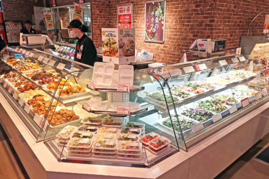 板橋店でも、イートインスペースを新設したため、店舗で購入した惣菜を店舗楽しめる告知を惣菜売場の各所で行っている。