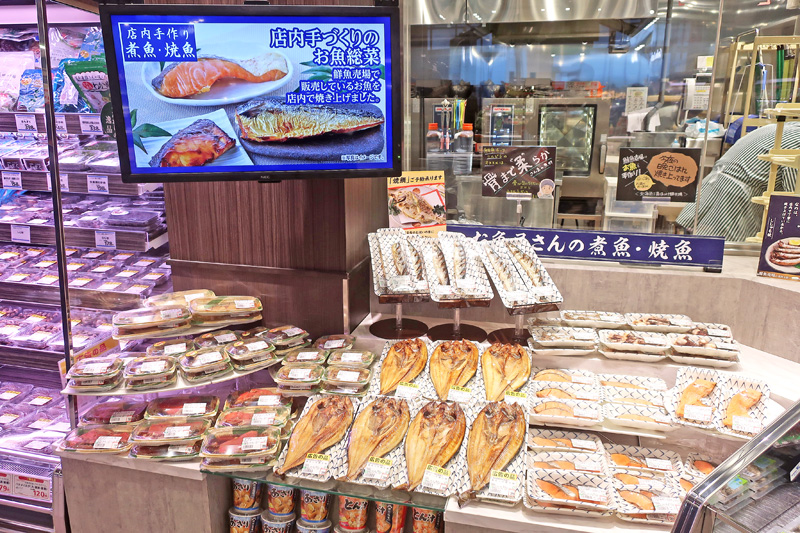 店内手作りの「煮魚・焼魚」コーナーでは、圧力釜で調理した「骨までやわらか煮付」の品ぞろえや、夕方に「焼魚の焼き立てバラ販売」を実施する。