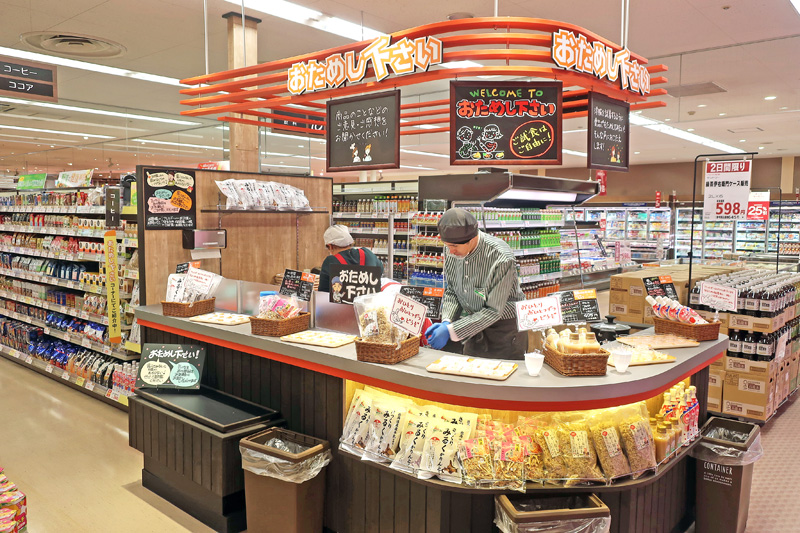 店舗奥には集客コーナーの一つとして試食専門コーナー「おためし下さい」を設置した。