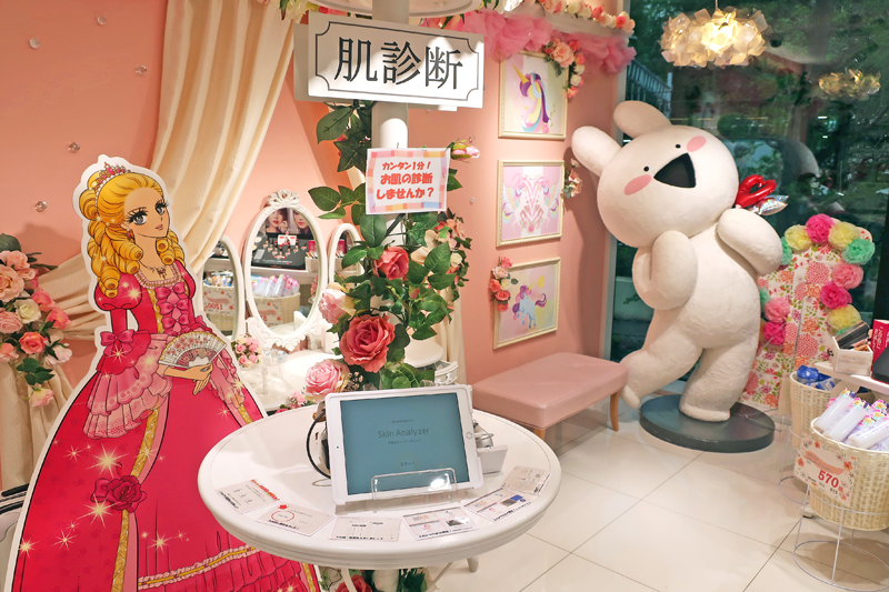 タブレット端末を活用したセルフサービスの肌診断サービスを導入し、対面販売に慣れていない人でも自分にあった商品を購入しやすい環境を整えた。