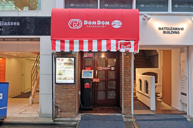 ドムドムハンバーガーPLUSは、藤崎社長と縁があった昭和22年創業の老舗洋食屋でありカツカレー発祥の店「銀座スイス」の旧店舗に出店した。今回、銀座スイスが移転することに伴い、ドムドムハンバーガーの出店につながった。そのため、「銀座スイス」とのコラボメニューとして、本家の銀座スイスのカレーソースを使った「カツカレーバーガー」(単品1490円)も販売する。