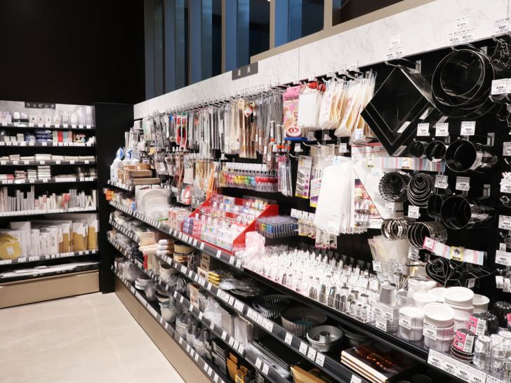 店内は、日本の伝統的な食材から、製菓・製パンの材料、調味料、ラッピング用品、手作りキットなどがそろう。