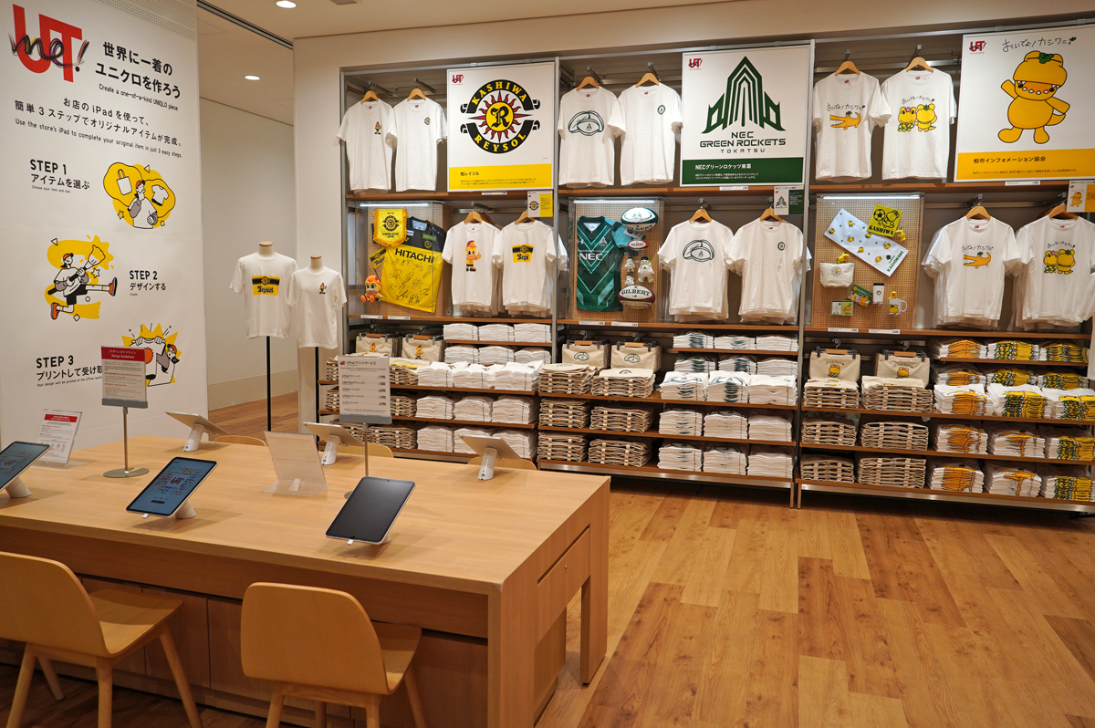 柏市を中心とした東葛8市をホームタウンとするプロサッカークラブ「柏レイソル」、東葛地域をホームタウンとするラグビーチーム「NECグリーンロケッツ東葛」、柏市のオフィシャルPRキャラクター「おいでよ!カシワ二」、UDCKタウンマネジメントによるまちづくり推進プロジェクト「柏の葉スマートシティ」とのコラボTシャツやトートバッグ(税込1990円以上)を購入できる。