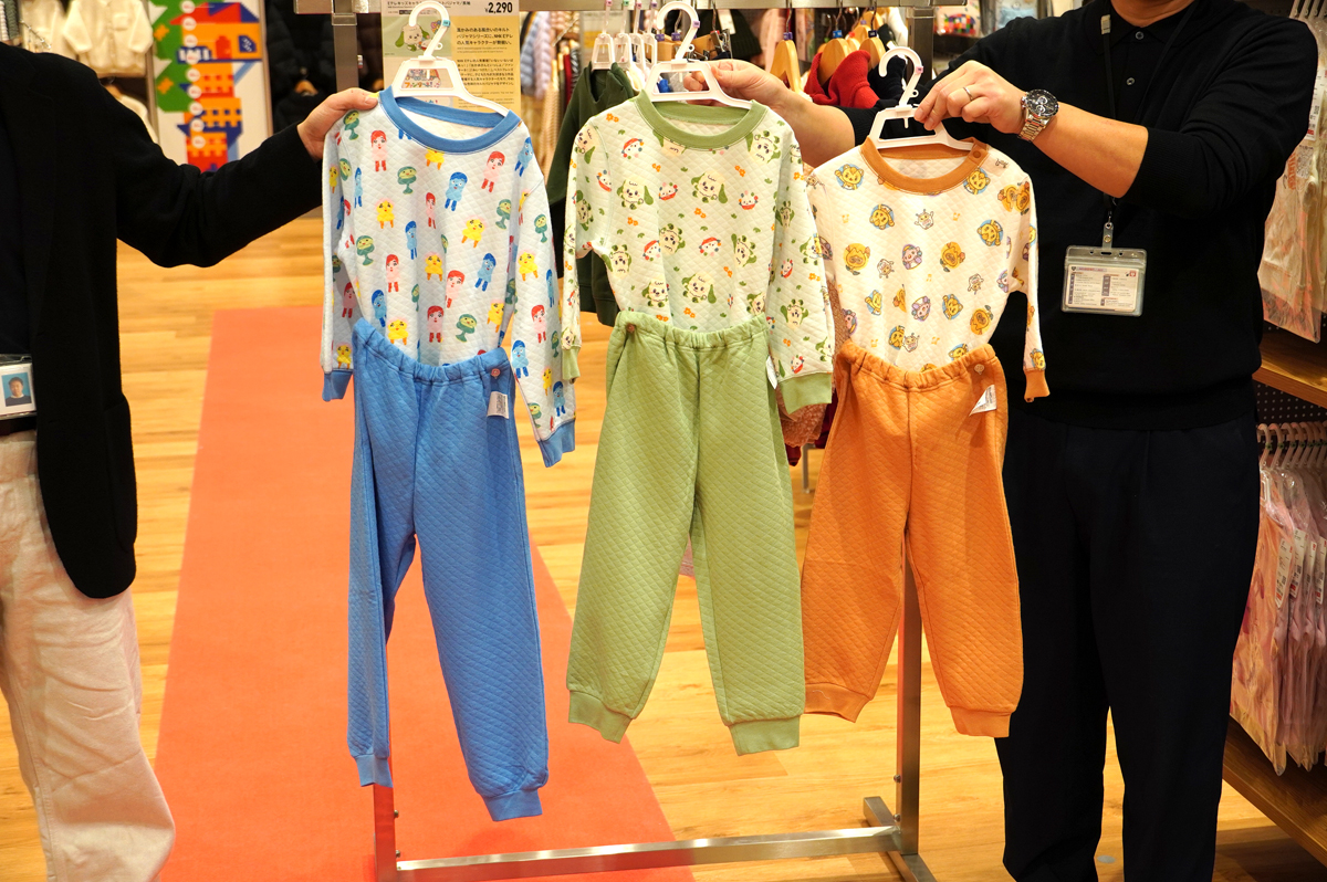 他店舗に先駆け、11月中旬に全国発売予定の「Eテレキッズキャラクターズ キルトパジャマ」(各2290円)を先行販売。NHK Eテレの人気番組「いないいないばあっ!」、「おかあさんといっしょ/ファンターネ!」、「みいつけた!」3作品のキャラクターをデザインした。